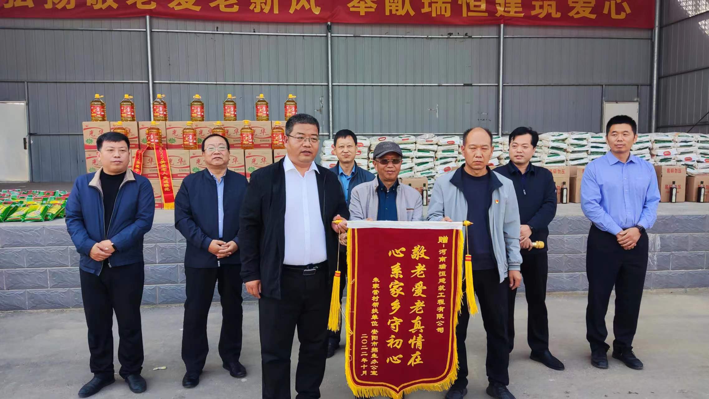 高莊鎮(zhèn)黨委書記王德勇和鎮(zhèn)長(zhǎng)郭威代表村兩委向瑞恒公司頒發(fā)了敬老牌匾。朱家營(yíng)村幫扶單位安陽(yáng)市招生辦公室副主任于重生向瑞恒公司頒發(fā)了敬老錦旗。